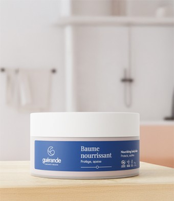 À la croisée des éléments et des astres s’élabore un phénomène unique de filtration des eaux : les salines. Sous l’effet de la lune, la terre et la mer se distillent pour transmettre leur vitalité sous forme de sels minéraux et oligo-éléments. Cette distillation des eaux mène à la naissance des Eaux-mères, un concentré d’eaux marines constitué de plus de 70 sels minéraux et oligoéléments (magnésium, cuivre, zinc…), dosés en parfaite affinité avec la peau. Cette eau unique, idéale, à la composition minérale extraordinaire, constitue l’actif phare des produits Guérande Cosmétiques. Chaque formule contient également des extraits ciblés pour leurs propriétés sur la beauté de la peau : algues, plantes, argile, sel, etc…